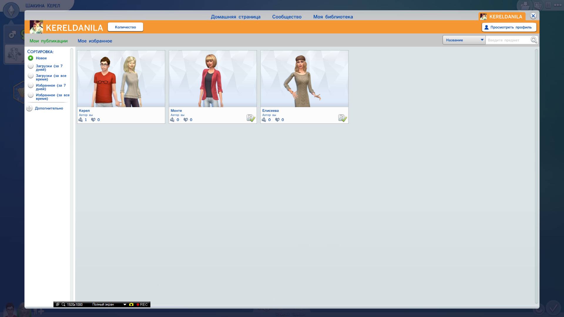 А эта каталог всех опубликованных мной персонажей. Так как на страничку могут зайти ваши друзья, они смогут оценить ваших персонажей! И наши любимые функции "сортировки" о которых говорилось ранее.