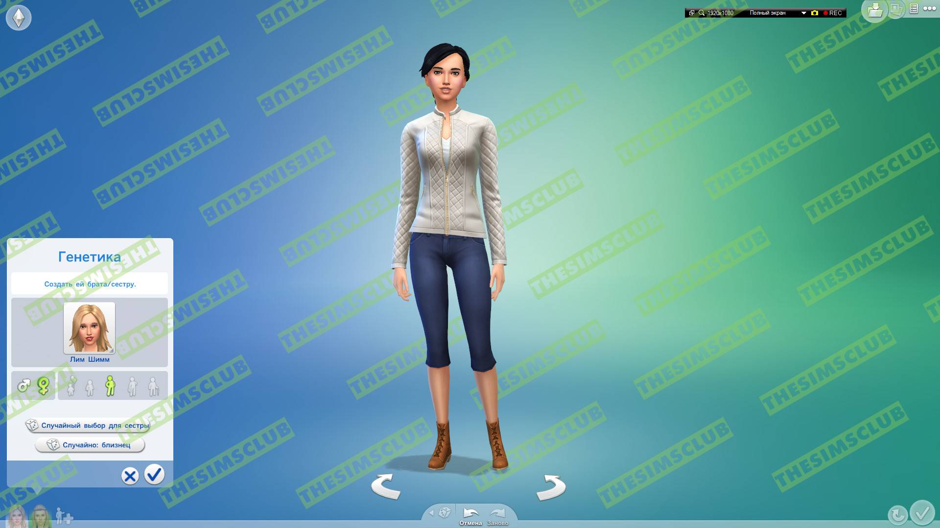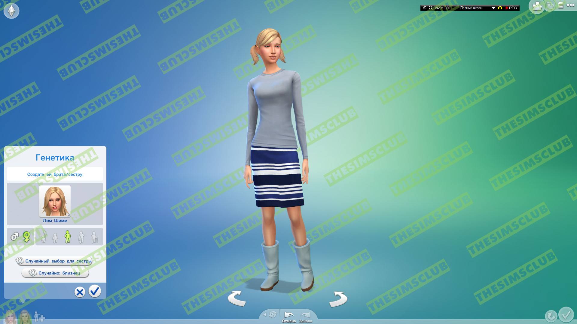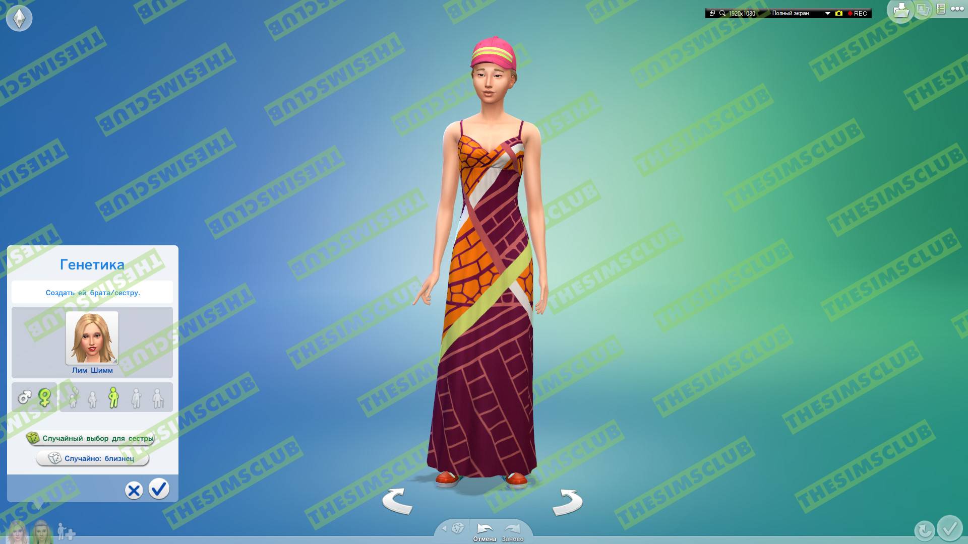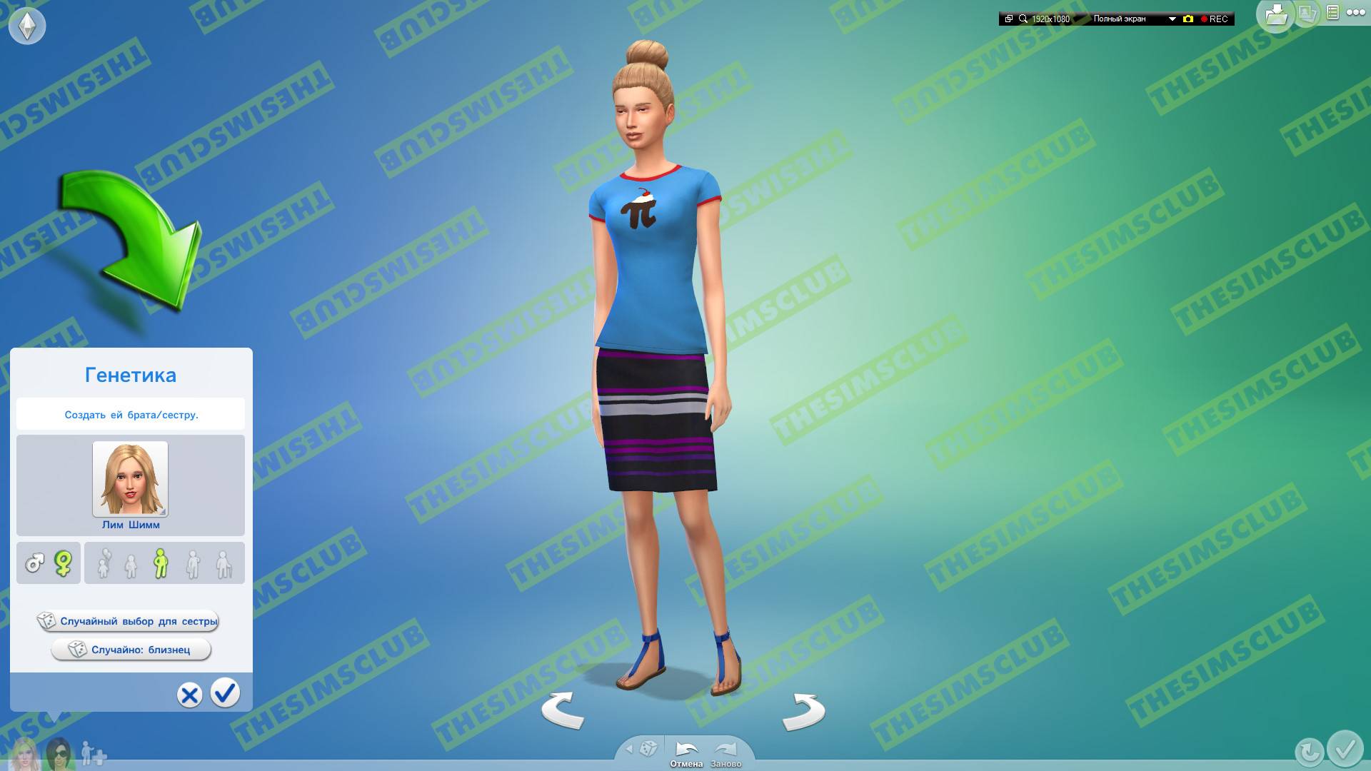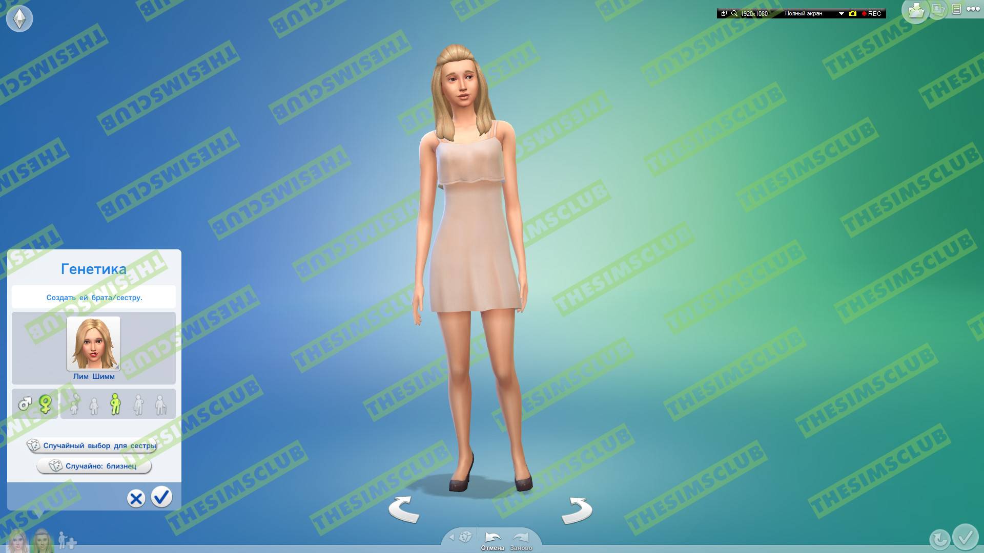 Теперь поговорим о главных кнопках! Начнём с кнопки "Случайный выбор для сестры" (То есть генерация персонажа который схож с вашим, имеющий общие (родовые) черты лица, но не копирующим его внешность целиком):
