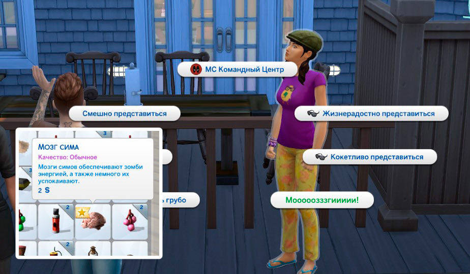 Пожалуй, самая главная потребность - в мозгах, для восполнения которой необходимо нажать на любого сима и выбрать взаимодействие «Мооооозззгиииии!», после чего зомби нападёт на сима и "возьмёт" его мозги (появятся в багаже), а также превратит его в зомби.
