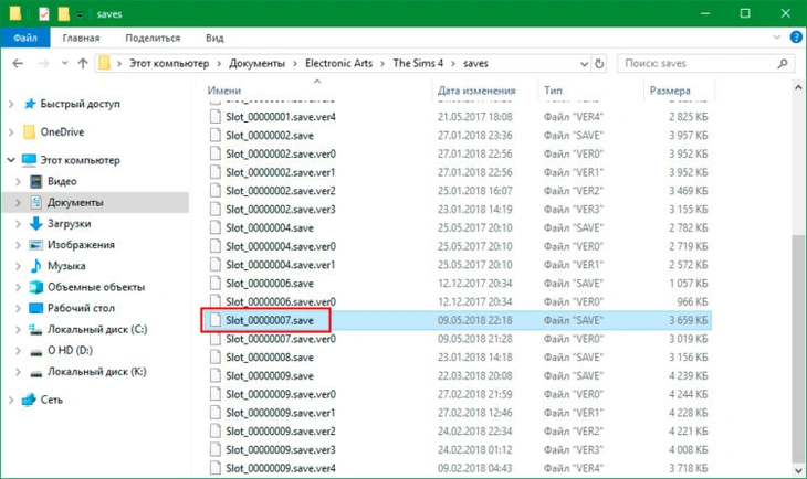 4. Закройте игру, перейдите в Документы\Electronic Arts\The Sims 4\saves и найдите необходимый файл сохранения;