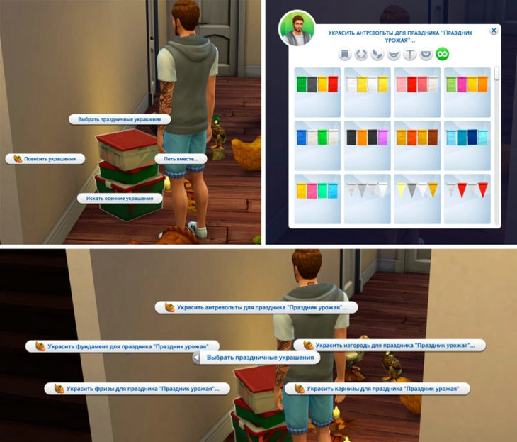 Режим покупки содержит множество украшений, в том числе и для существующих в дополнении праздников. Чему мы были поражены, так это количеству перекрасок предметов, их очень много. Посмотреть всю эту красоту вы можете в видео ниже.