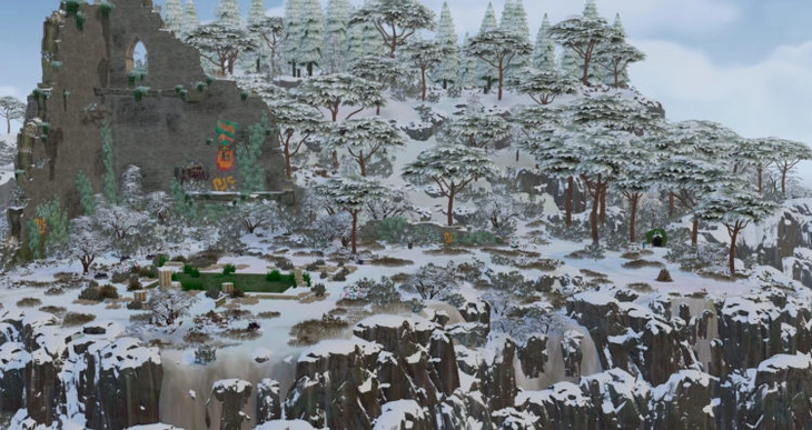 Озеро зимой замерзшее, погода пасмурная, на окнах узоры, а объекты покрыты снегом — всё как и должно быть. Правда, в некоторых местах можно заметить зеленые растения и текстуру травы, но, уверены, что со временем это поправят.