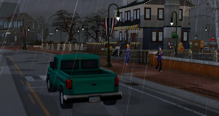 На жителей городка погода тоже влияет: зимой они постоянно поскальзываются и падают (даже слишком часто) и закрываются рукой от метели, а если стало слишком холодно или пошёл дождь, то забегают в ближайшее помещение. Собственно, ваш сим будет делать так же, но просто забежать в помещение — недостаточно, ведь даже в нём может быть холодно. Так что обязательно приобретите камин, чтобы быстро согреть его или термостат, чтобы регулировать температуру вообще во всём доме.