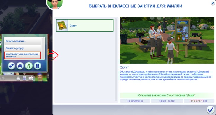 Пополнить ряды скаутов можно с помощью телефона или компьютера, выбрав пункт “Участвовать во внеклассных занятиях”.