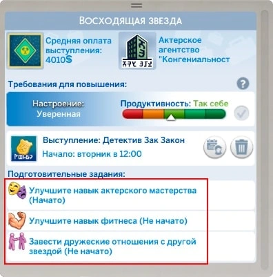 После успешного (мы надеемся) прослушивания у вас появится список подготовительных заданий для съемки, которая обычно происходит через день или даже на следующий. Выполнение этих заданий повышает шансы вашего персонажа идеально сыграть его роль.