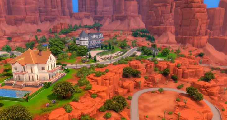 Точно неизвестно, является ли городок прямой отсылкой к Китежграду из The Sims 2, но их определенно связывает таинственность и внешний вид, и, особенно, наличие кратера — это навевает приятный ветерок ностальгии. Впервые в игровом наборе появляется такой большой городок: два района и 11 участков (а это, между прочем, сравнимо даже с дополнением «Путь к славе»). Присмотревшись, можно заметить, что на самом деле места в городке куда больше, и почему вместо настоящих участков размещены декоративные — непонятно.