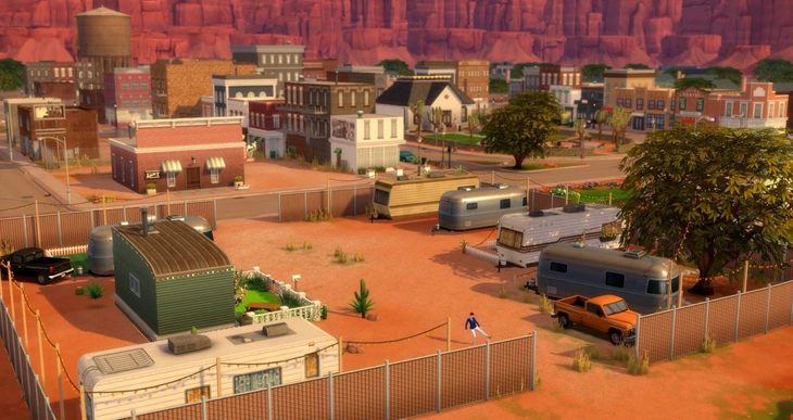 Городок не полностью пустынный в отличие от того же Оазис Спрингса, и именно эти плавные переходы от песка к земле, в которой ещё осталась жизнь, делают Стрейнджервиль уникальным. Это просто уровень эстетического наслаждения, который сложно передать словами. Одно можно сказать точно — городок получился красивым.