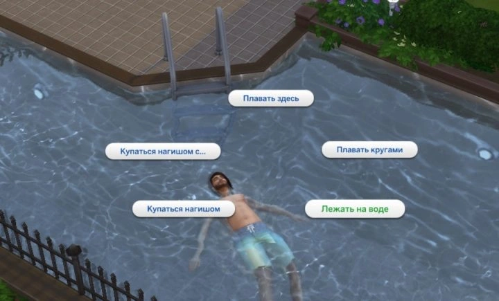Для симов, плавающих в бассейне, доступно новое действие — «Лежать на воде». Нажмите на воду. Оцените новое действие. Расслабьтесь.