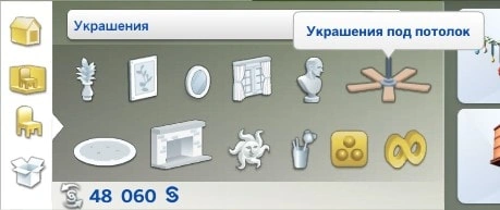 Мы добавили новую категорию объектов для потолка в режиме строительства, чтобы вам было проще искать те же вентиляторы.