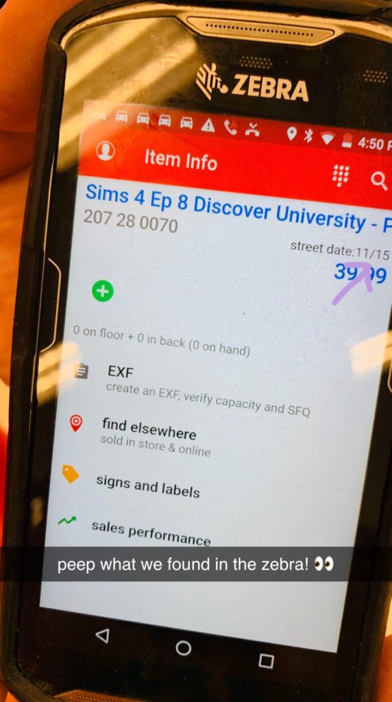 Как известно, игровые ритейлеры получают информацию о новых дополнениях для The Sims 4 задолго до их официального выхода. Благодаря этому, пользователю Твиттера Christophuck, работающему в Target, удалось обнаружить в программе для инвентаризации магазина упоминание восьмого дополнения под названием «Discover University», что переводится как «Откройте для себя университет» (скорее всего, это рабочее название, которое будет изменено ближе к анонсу).