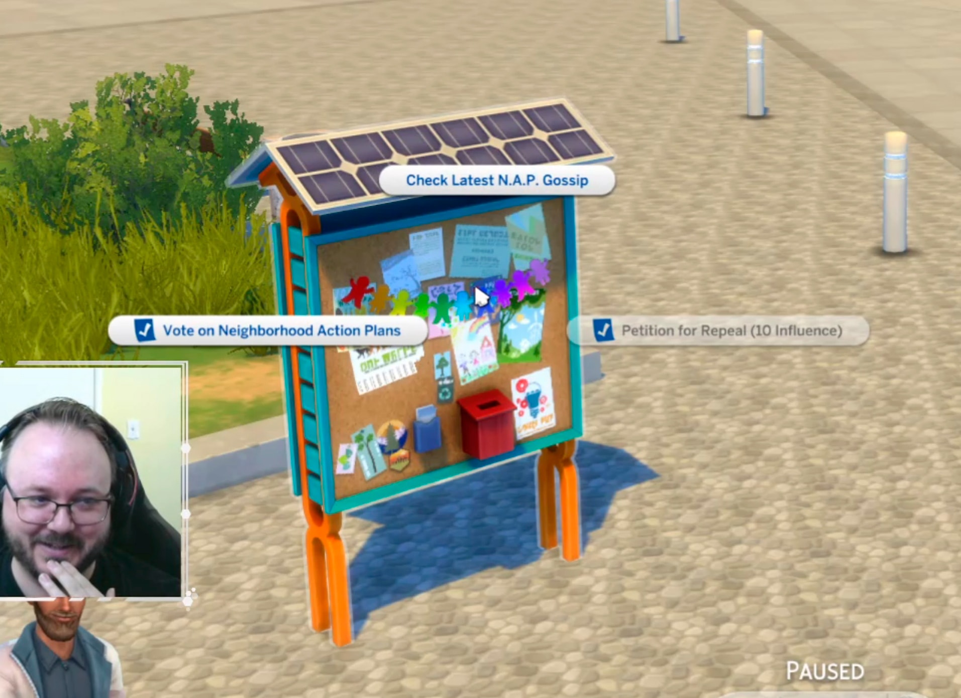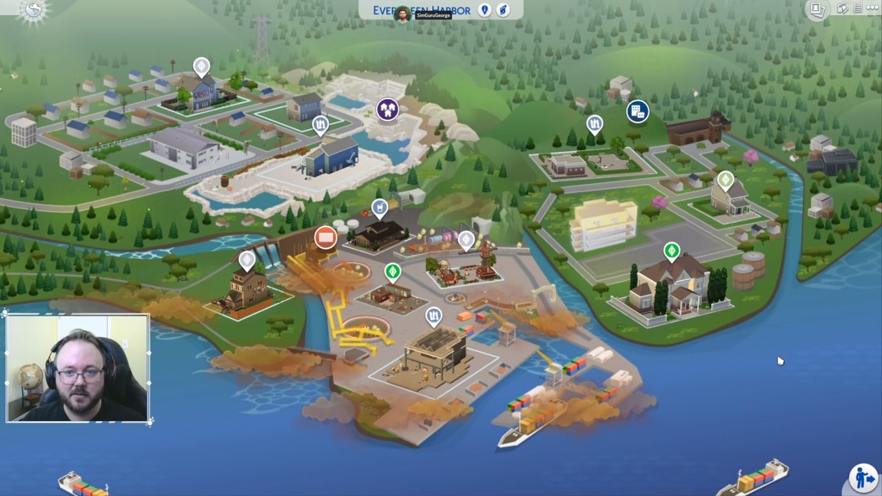 - В Эвергрин-Харбор есть несколько заранее созданных играбельных симов (из трейлера), которые при вашем заселении будут приходить вместо обычных соседей, чтобы ознакомить вас с городскими комплексами мер и показать доску для голосования за них;