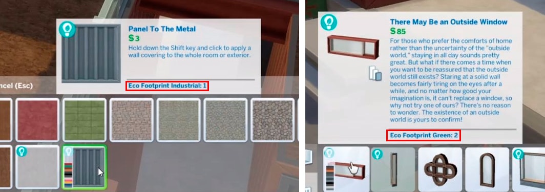 - То, какие материалы вы используете для постройки своего участка, будет влиять на окружающую среду. В режиме строительства под описанием объектов отображается уровень их влияния;