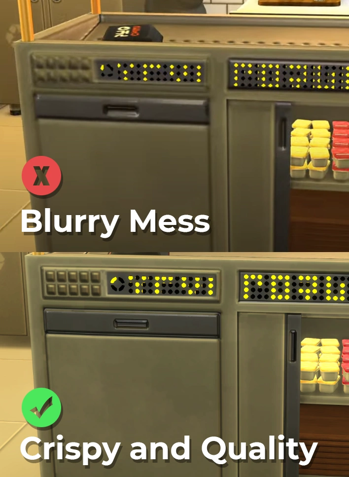 Если текстуры в вашей игре выглядит так, как на первом скриншоте, это можно исправить. Недавно качество текстур в The Sims 4 заметно снизили, уменьшив их разрешение с 2048х2048 на 1024х1024. Так будет, даже если вы поставили максимальные настройки. Причём, страдают от этого не только текстуры официальных объектов, но и дополнительный контент — особенно тот, что называют "альфа".