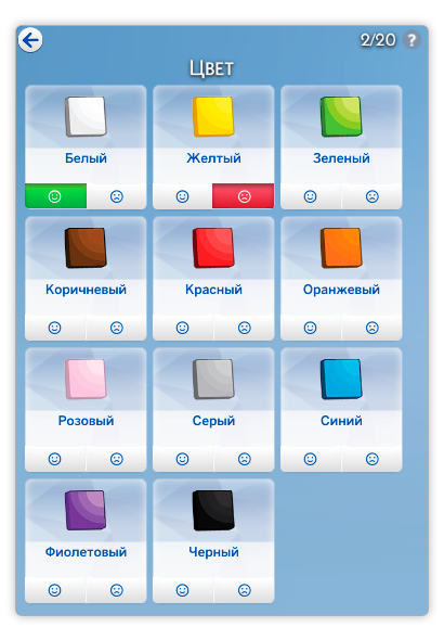 | Цвет | Жанр музыки | Увлечения и навыки |