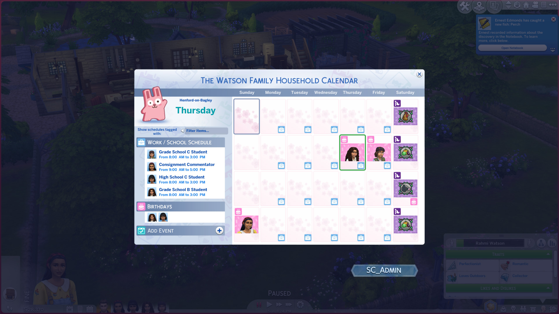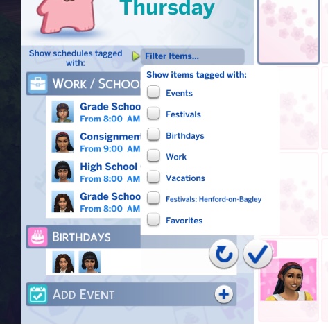 Календарь теперь будет показывать такие события, как расписание работы, учёбы, дни рождения, праздники и будущие фестивали, если у вас есть дополнения, которые добавляют их в игру.