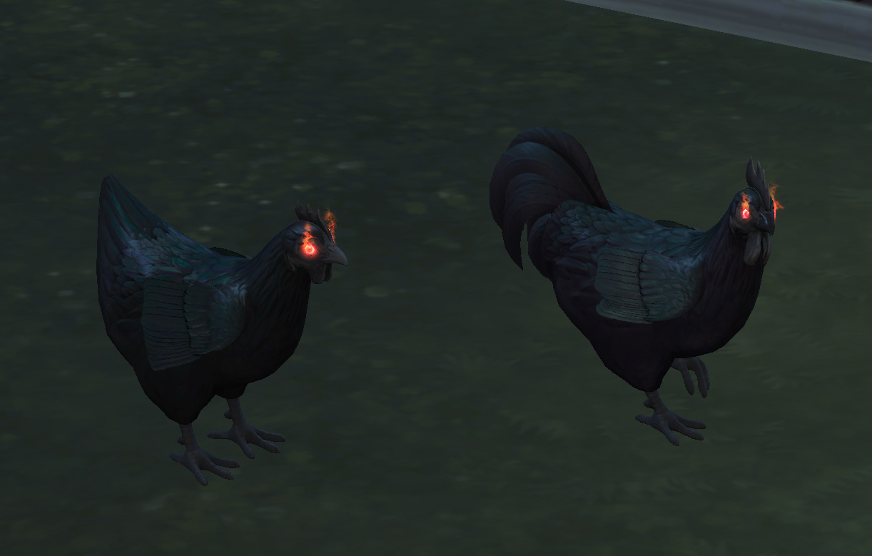 Злобные куры — уникальный вид, который отличается иссиня-чёрным окрасом оперения и пылающими глазами. Они являются грозными противниками всей нечисти, и они будут оберегать вас, если вы попросите курицу вам помочь.