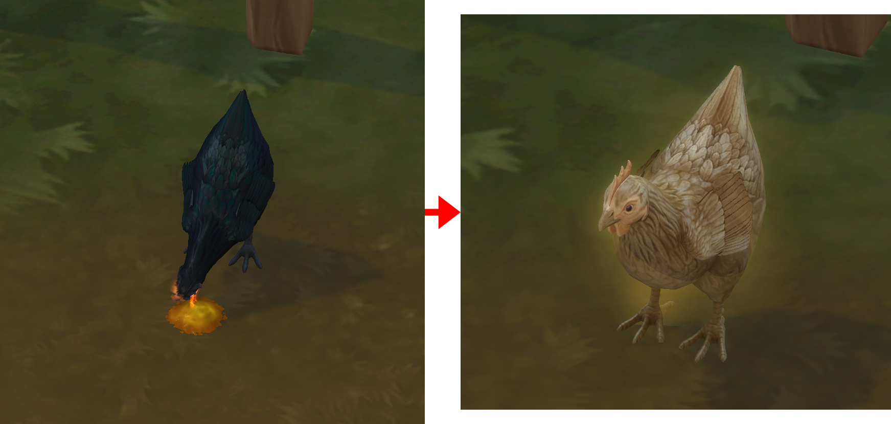 Золотоносные курицы — мечта любого человека! Их уникальность в том, что от них исходит магическое свечение, и они способны повысить качество любого объекта до идеального, если попросить! Среди этих объектов: картины, поделки, качество плодов/овощей и прочие!