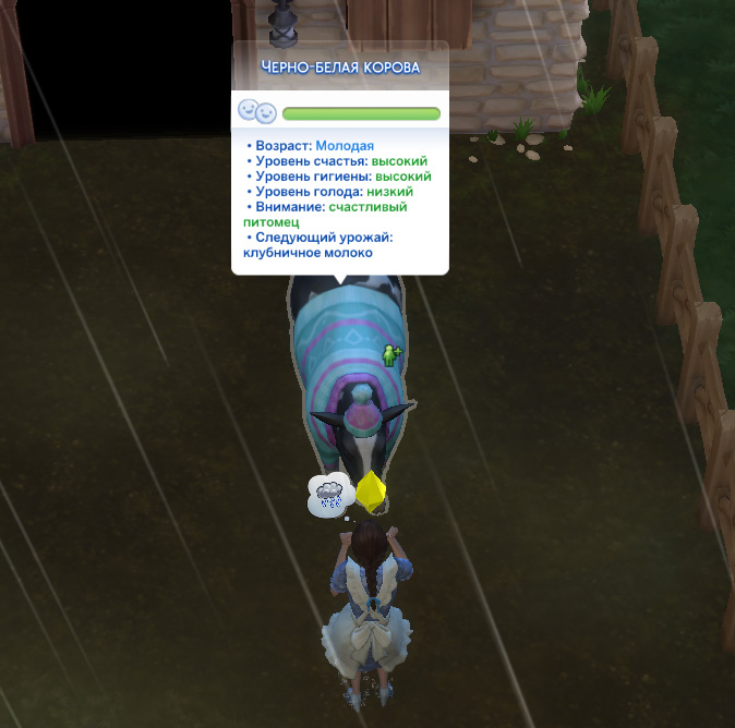 Качество и количество молока напрямую зависит от ваших отношений с коровой, от удовлетворённости её потребностей, а также от настроения, в котором находится доящий персонаж. Поэтому перед дойкой изучите потребности своей коровы, наведя на неё курсор, а также обеспечьте персонажу хорошее настроение!