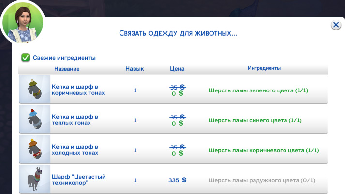 Если у вас нет своей ламы, но связать одежду хочется, то всегда можно посетить лавки в Финчвике и приобрести шерсть нужных цветов!