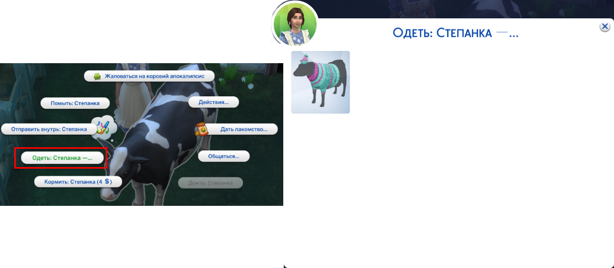 Корову можно обменять на симолеоны, мясо, продукты с ингредиентами и лакомства. Продукты обмена придут вам по почте.
