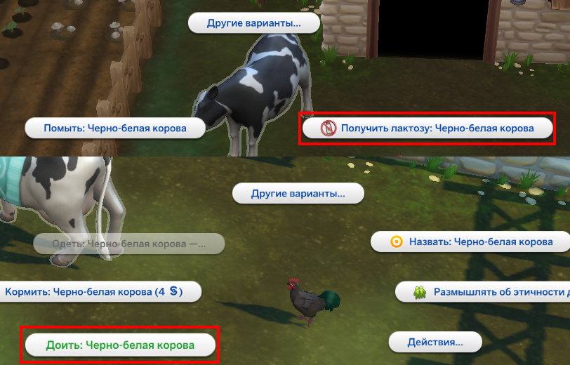 Для того, чтобы подоить корову, выберите действие "Доить" (или "Получить лактозу" у персонажей с непереносимостью лактозы), когда оно будет доступно. Обычно подоить корову можно рано утром и в полдень.