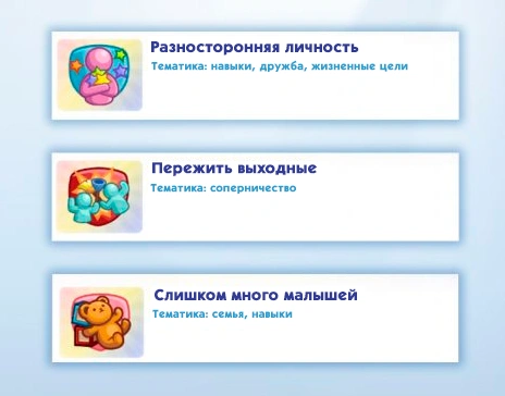 - Требования: семья из трёх малышей и одного персонажа возраста “молодой” или старше.