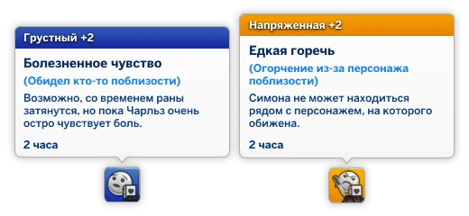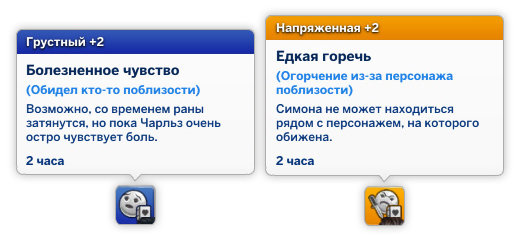 Часто негативные эмоции связаны с не самыми приятными событиями в жизни персонажа: обида, предательство, драка, измена, неоправданная грубость. При виде персонажа, который поступил неправильно, персонаж может злиться, раздражаться или грустить.
