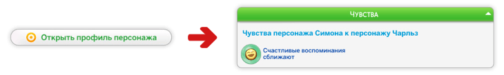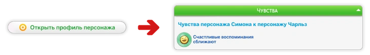 Для того, чтобы убедиться в том, какие чувства испытывают персонажи, вы можете развернуть окно разговора, нажав на изображение с книжкой с сердечком.