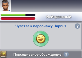| Сплочённость с задушевным другом | Чувство близости (кратковременное) | Приятный разговор при наличии образа жизни "Сплочённость" | sentimentTrack_Close_ST_lifestyleCloseKnit | |