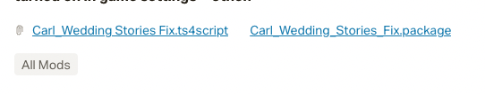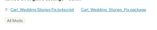 Данный мод исправляет такое поведение, заставляя симов делать то, что они должны. Он заставляет их собираться для тоста или возле танцевальной площадки для первого танца молодоженов. Он отменяет вещи, которые мешают симам реагировать на ваши действия, чтобы они стали более отзывчивыми и снижает количество общающихся симов перед началом свадьбы.