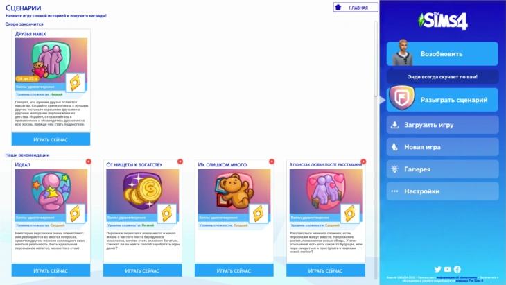 - Вкладка сценариев в режиме жизни получила обновление: теперь легче понять, какие действия требуются от сима.