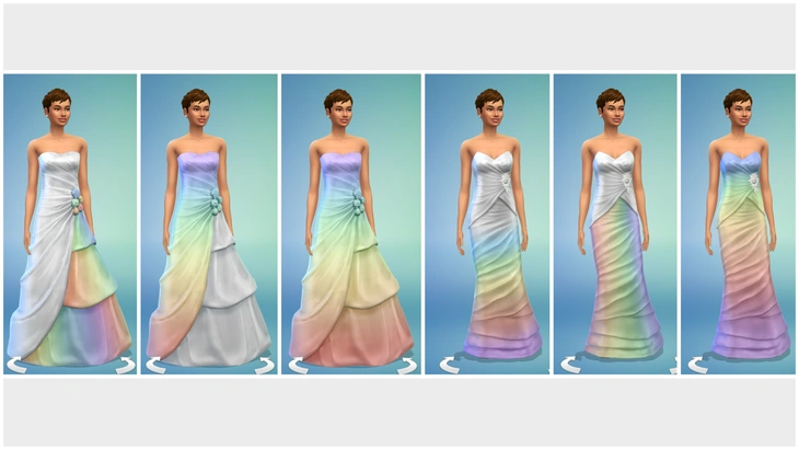 - В ответ на ваши отзывы о радужном свадебном платье, которое мы добавили в основную игру с выходом «Свадебных историй», мы добавили для двух платьев радужные варианты с эффектом деграде: