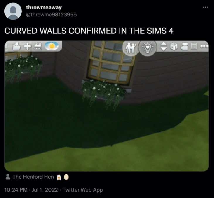 Несколько дней назад один из пользователей Твиттера опубликовал скриншот изогнутой стены в The Sims 4. Поскольку аккаунт автора был создан только для этого твита, информация была воспринята довольно скептически. Однако некоторые игроки обнаружили возможное подтверждение данной информации.