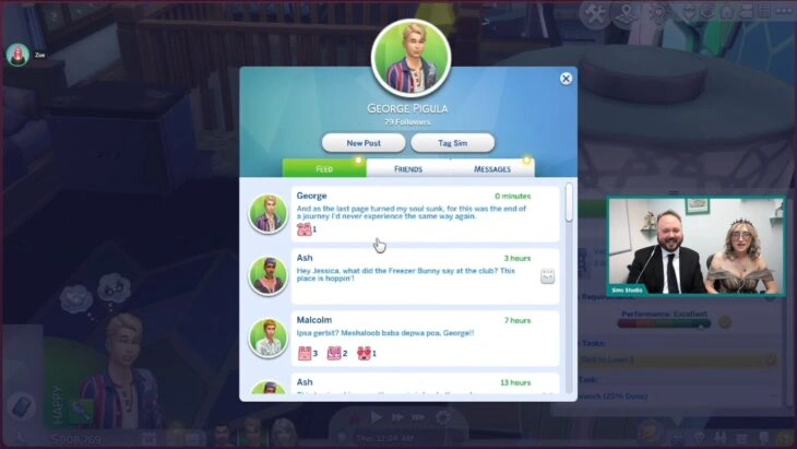 - Можно публиковать посты (например, рецензию на книгу или рассказ о своем путешествии), переписываться с персонажами и реагировать на чужие записи. Подписчики новой социальной сети будут общими с подписчиками социальных сетей из других наборов/дополнений.
