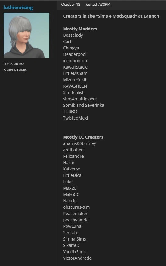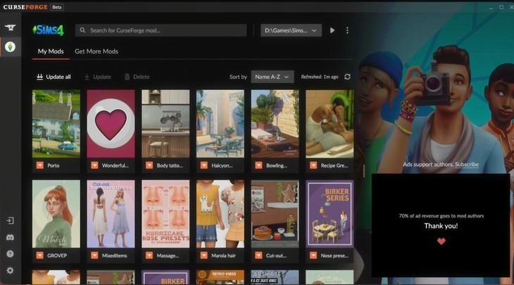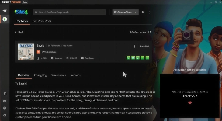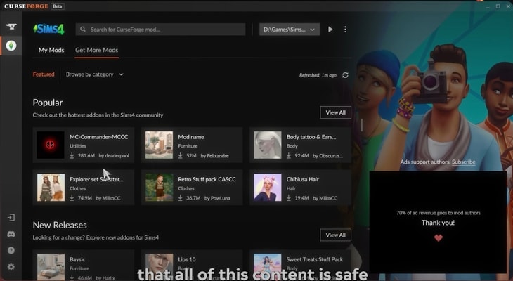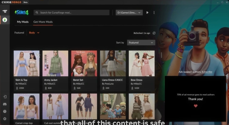 Во время "Behind The Sims Summit" состоялся анонс сотрудничества The Sims 4 с Overwolf и CrossForge, платформой для централизованной загрузки надёжных модов и пользовательского контента (МПК). Они опубликовали видео, подробно рассказывая о впечатляющих возможностях программы CurseForge Mod Manager для игроков The Sims 4: