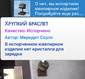 При низком уровне навыка и плохом самочувствии персонажа вы рискуете испортить украшение! В таком случае в нём будет отсутствовать инкрустация, а кристалл будет утрачен навсегда!