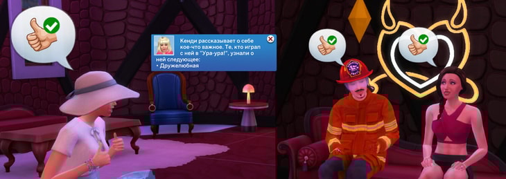 В "Вух-ху!" персонажи вытягивают карточки и задают вопрос о каких-либо предпочтениях, а остальные игроки отвечают на него. Отличный способ присмотреться к потенциальному партнёру!