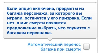 Настройки багажа умершего персонажа