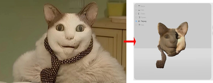У инструмента есть один недостаток: из-за использования всего одного снимка ИИ не может корректно “представить”, каким образом объект должен располагаться в пространстве. Однако для некоторых объектов с этим может помочь режим симметрии, который может “отзеркалить” более красивую сторону на противоположный бок.