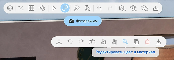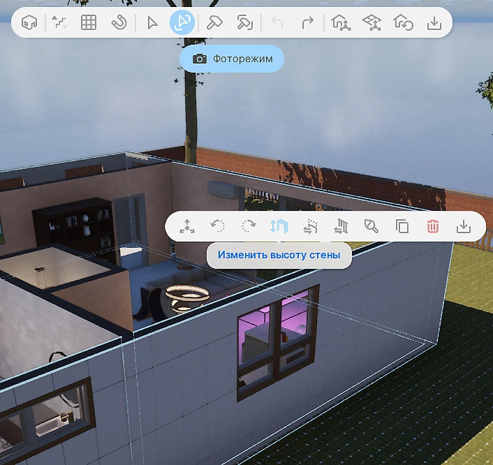 Остальная часть инструментов появляется при нажатии на объект. Они разнятся в зависимости от того, что вы выбрали: стену, окно или мебель.