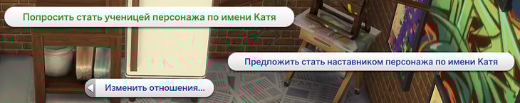 Аналогично тому, как персонаж может стать чьим-либо учеником, точно так же можно стать и наставником! Выберите подходящего ученика, перейдите в категорию “Отношения”, раздел “Изменить отношения” и действие “Предложить стать наставником”.