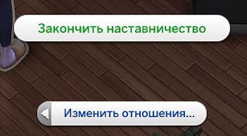 Если вы хотите закончить обучение под чьим-то началом, вы можете выбрать своего наставника, перейти в категорию “Отношения” и в разделе “Изменить отношения…” выбрать действие “Закончить наставничество”.