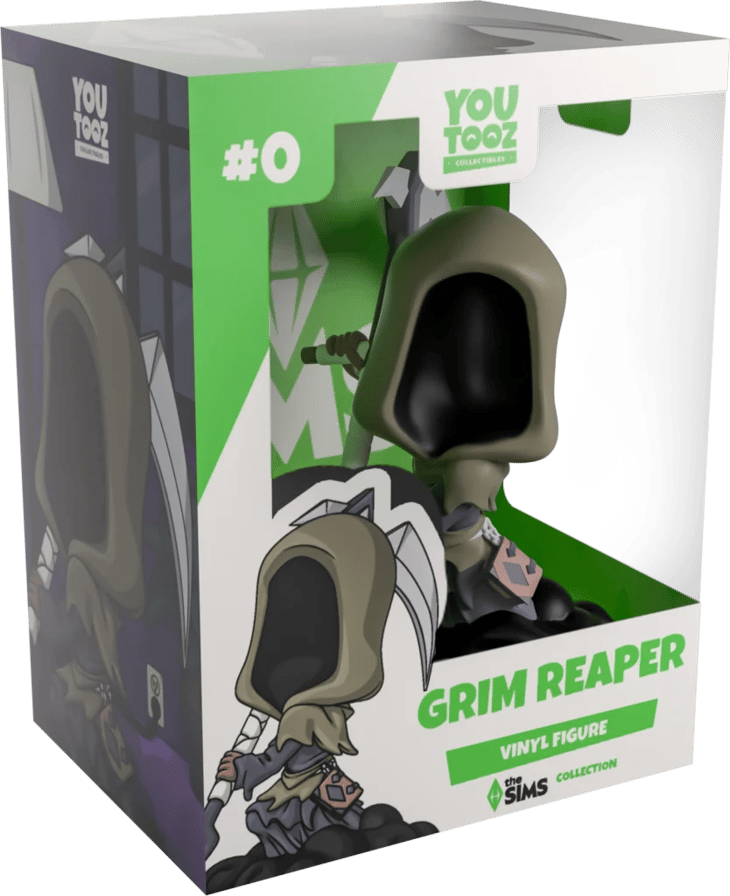 Лишь немногие вещи в этой жизни предопределены: смерть, налоги и выход фигурки Костлявой Смерти от Youtooz! Выскочив из тени, чтобы забрать душу вашего сима, только что умершего после неудачно приготовленных макарон с сыром, Костлявая смерть возвышается на 4,6 дюймов (примерно 11,7 см) и готовится обрушить удар своей зазубренной косой. Она одета в серо-зелёные изорванные одежды, которые скрывают её затенённое лицо, коричневый том висит на её левом бедре, а скелетный кролик покоится на правом. Наружная часть упаковки демонстрирует ночную сцену внутри дома, и одиночный свет освещает урну, в то время как внутренняя часть окрашена в светло-зелёный цвет и украшена узором из пламбобов. Защитный чехол продолжает это по бокам с белой передней частью, чтобы фигурка могла быть видна через большое прозрачное окно. Этот коллекционный предмет был разработан совместно с членом сообщества @therealracckun и поставляется в матовом, рельефном защитном внешнем чехле и пластиковом протекторе индивидуального размера для максимальной защиты во время доставки.