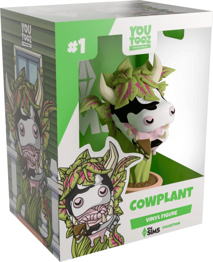 Ничто не говорит лучше о здоровой сбалансированной диете, как съесть жвачное растение до того, как оно съест вас! Эта фигурка высотой 4,9 дюймов (почти 12,5 см) демонстрирует культовое жвачное растение, растущее из глиняного горшка, в то время как пышные зелёные корни тянутся из его основания. Стебель растения тянется к небу, чёрно-белая коровья голова торчит из красно-зелёных листьев, а из её открытого рта свисает язык в форме торта. Внешняя часть упаковки проиллюстрирована таким образом, чтобы показать сад растущих жвачных растений, в то время как внутренняя часть окрашена в светло-зелёный цвет и украшена узором из пламбобов. Защитный чехол продолжает это по бокам с белой передней частью, чтобы фигурка могла быть видна через большое прозрачное окно. Этот коллекционный предмет был разработан совместно с членом сообщества @therealracckun и поставляется в матовом, рельефном защитном внешнем чехле и пластиковом протекторе индивидуального размера для максимальной защиты во время доставки.