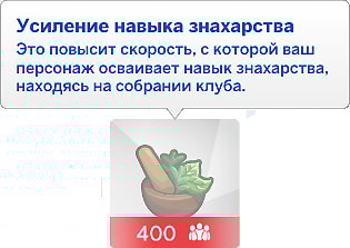 При наличии дополнения «Веселимся вместе!» вы можете создать клуб и приобрести усиление скорости освоения навыка знахарства!