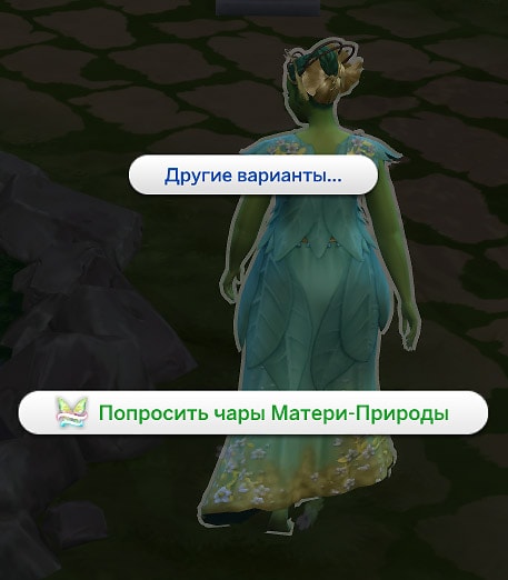Посадите фейский росток в землю, нажав на любой участок земли или грядку. Он исчезнет, а перед вами появится Мать-Природа! Вам будет доступно всего одно действие — "Попросить чары Матери-Природы".