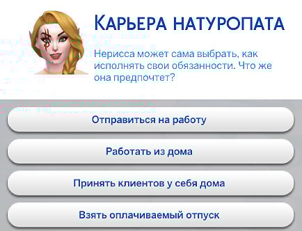 Карьера натуропата — новая открытая карьера, которая позволит применить новые навыки жизни на природе и знахарства на практике! Каждый пациент будет приходить со своим отношением к вам, а если вам вдруг надоест "играть в доктора", то вы всегда можете поработать из дома или в офисе! Данная карьера прекрасно объединяет геймплей дополнения «Волшебство природы», пусть однотипная работа может поднадоесть.