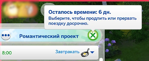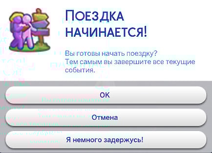 При выборе опции "Я немного задержусь!", поездка начнётся, но персонаж не отправится на участок проведения. Чтобы отправить его, нажмите на персонажа и выберите действие "Отправиться в поездку".