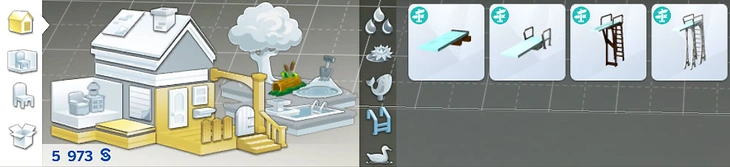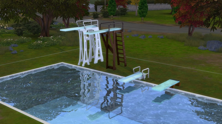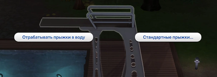 Для того, чтобы развить навык прыжков в воду в дополнении «The Sims 4: Навстречу приключениям», вашему персонажу понадобятся трамплины и вышки. Они представлены в четырёх вариантах, а приобрести их можно в режиме строительства в категории "Украшения для воды (на улице)", разделе "Объекты бассейна".