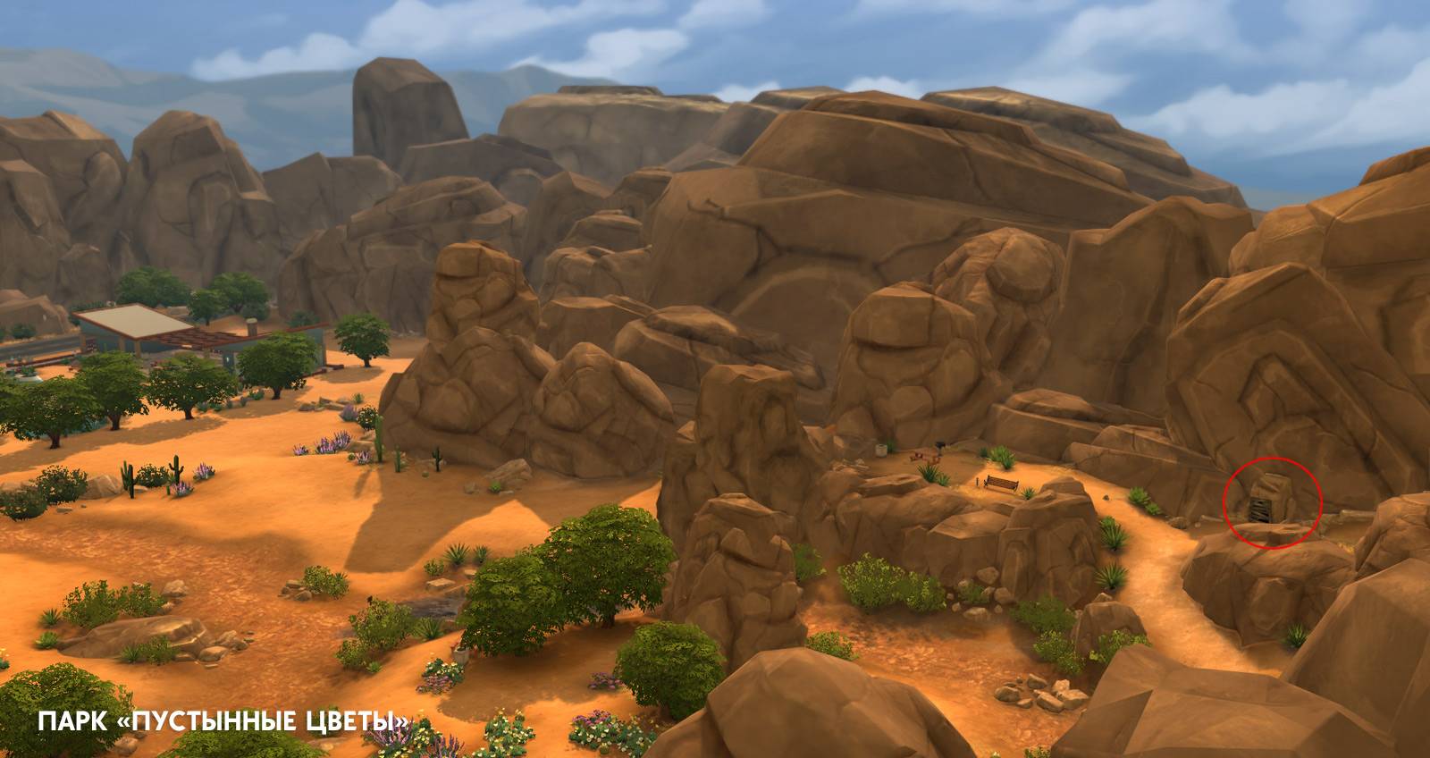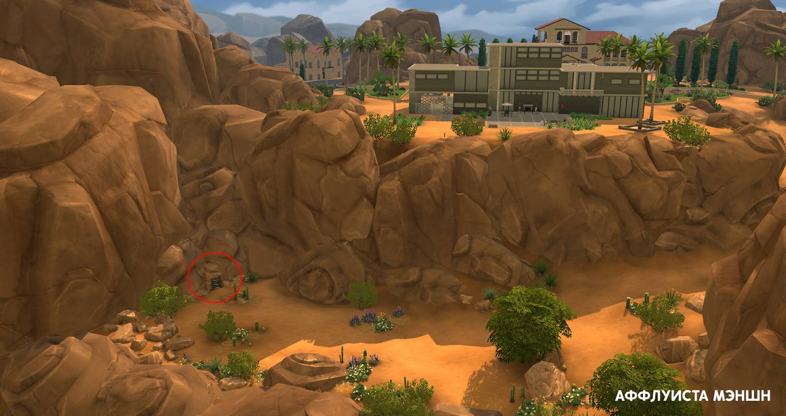 Скрытый участок в Оазис Спрингс называется Забытый Грот. Чтобы открыть его, вам нужно посетить парк «Пустынные цветы» или участок Аффлуиста Мэншн (на нём проживает семья Ландграаб) и найти заброшенную шахту/пещеру. Чтобы взаимодействовать с ней ваш сим должен иметь 10-й уровень навыка механики.